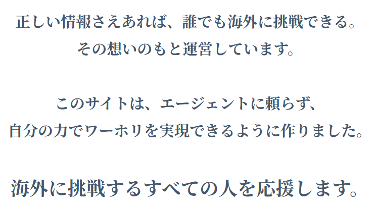 はじめて海外で働く人でも「何から始めればいいか」がすぐにわかるように、シンプルな流れで解説しています。
