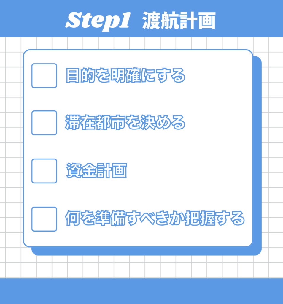 ここまでで、目的・滞在都市・資金計画の大枠が見えてきたら、次にやるべきことは 「何を準備すべきか把握する」こと です。