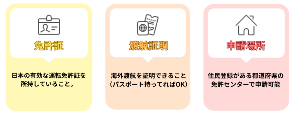 国際免許証は、この3つの条件を満たしていれば取得できます。